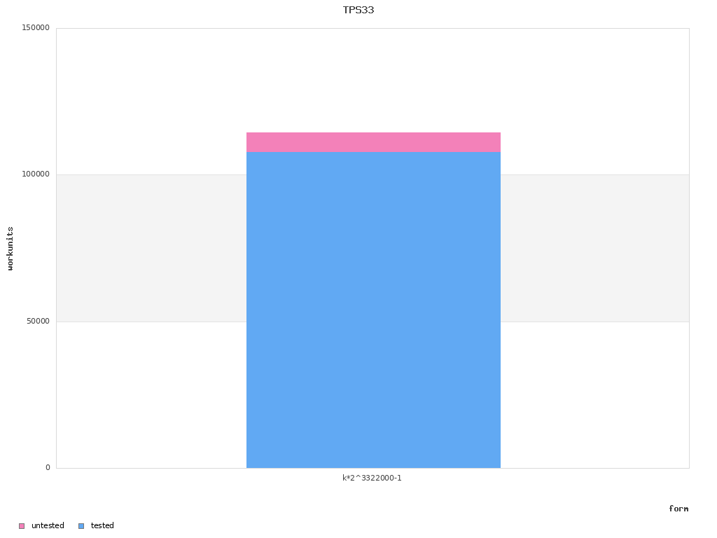 | k*2^3322000-1 | 114,321 | 5,060,685 | 399,995,852,535 | 107,981 | 6,340 | 183 | 3,322,000 | 3,322,000 | 3 |